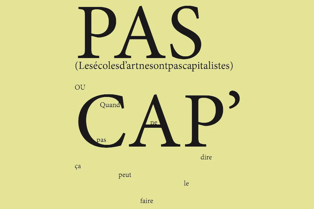 Selon cette intensité de l’expérience en l’école d’art, on ne peut plus forcer la cohérence de l’un à l’autre : la formation et la carrière à suivre comme une garantie sur investissement, c’est une méprise et un mépris des écoles. Si le capitalisme s’immisce dans la formation, c’est à la manière du forceur : personne ne lui a rien demandé et c’est beaucoup mieux sans lui.