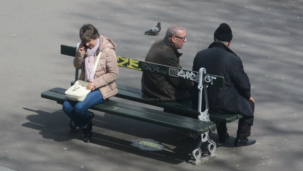 J’ai parfois du mal à me concentrer sur une conversation lorsque j’entends quelqu’un d’autre parler à mes côtés, cela me perturbe et me distrait, je finis par ne plus entendre ni l’une ni l’autre des conversations, je me sens perdu, déboussolé. Il y a beaucoup de bruits aujourd’hui sur le boulevard, ça n’arrange rien. J’entends les voitures qui s’arrêtent au feu rouge. Les enfants de l’école remontent le boulevard en se chamaillant. Les sirènes des ambulances, et celles de la police. Je n’arrive jamais à les distinguer. Je sens la rame de métro qui file sur le tracé souterrain de la ligne 2, son mouvement sonore fait trembler le blanc. Je porte un appareil auditif. Mes petits-enfants me demandent souvent lorsque je les vois si j’ai bien mis mes oreilles. Je me demande ce que cela pourrait donner si je devais décrire le parcours que je viens de faire pour retrouver mon vieux copain sur ce banc, en me concentrant uniquement sur les sons. Je me demande si on pourrait écrire une histoire avec des descriptions sonores. Coup de klaxon d’un camion, bruit de la sirène d’une péniche, coup de klaxon de la locomotive qui passe dans la gare de triage, une mobylette passe, une moto démarre, bruit des deux sirènes de mercredi midi, montantes, descendantes, passage d’une voiture rapidement, coup de klaxon d’un camion, passage du bruit du grincement des rails d’une locomotive dans les voies ferrées, bruit du moteur d’une péniche, une péniche qui tracte une péniche, passage d’un camion, passage du bruit d’une mobylette, coup de klaxon d’un camion, une voiture klaxonne, une voiture démarre, passage d’une moto, sirène d’une ambulance qui passe rapidement. Longtemps, j’ai eu un livre de poèmes sur moi. Quand j’ai quitté mon pays pour venir vivre ici avec ma femme, je l’ai perdu. Je parle bien le français mais j’ai gardé une pointe d’accent. La confiance prend du temps. Je n’ai pas peur de mourir, j’ai peur de me perdre.