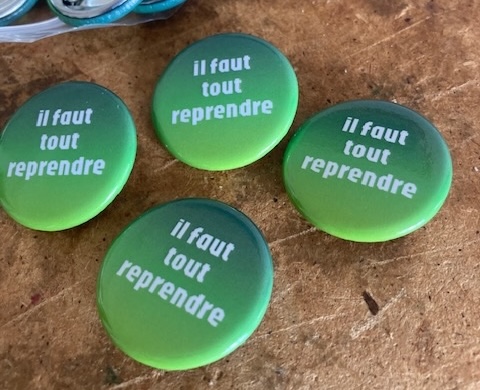 Badge Forme vintage choisie par TINA pour des affichages personnels et nomades de prises de positions politiques ou de slogans à triple sens.