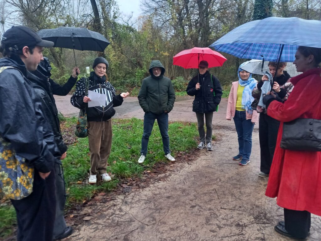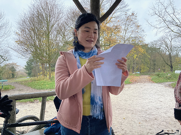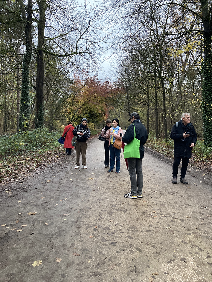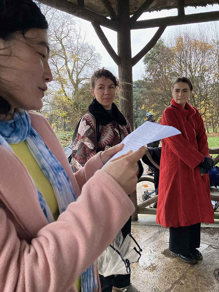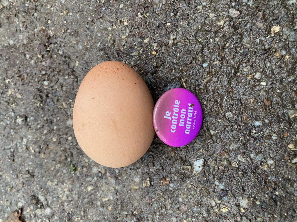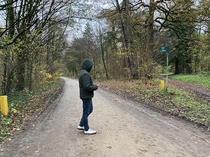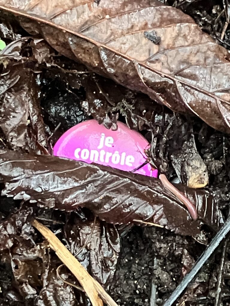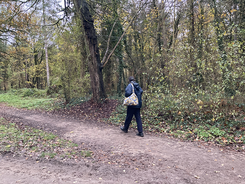 Pour me rendre à l’évènement ce soir-là, je traverse à vélo une longue allée dans la châtaigneraie. Je sens les craquements du bris d’écorces sous mes roues et décide de m’arrêter pour ramasser quelques châtaignes tombées au milieu du chemin.