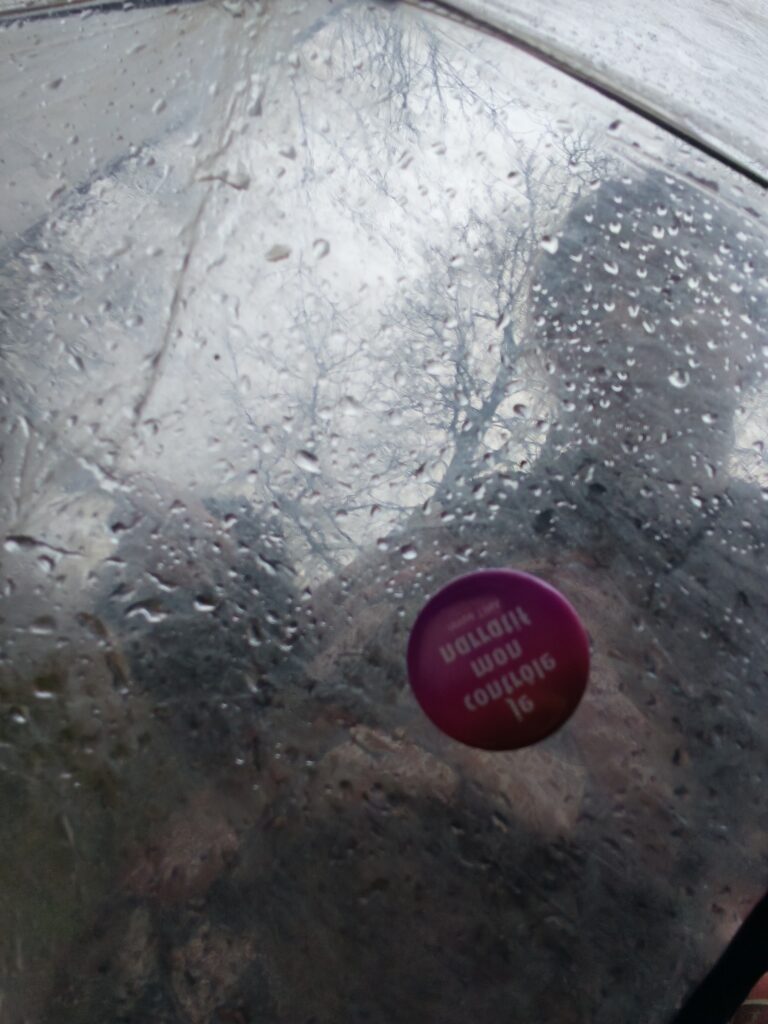 Je suis assise sous un arbre où une table et quatre chaises semblent avoir été disposé pour les visiteurs qui se seraient trompés de dates ou d’horaires. Une famille arrive en SUV. Eh oui c’est fermé. Le père prend quelques photos du donjon, la mère insiste pour que leurs deux enfants sortent de la voiture, prendre l’air, se dégourdir les jambes, profiter de la richesse architecturale du site. Les deux pré-ados ne semblent pas déçu d’éviter une visite par un guide trop sympathique, trop versé sur les anecdotes et une pluie de dates qui ne leur disent rien de précis. L’incarnation en princesse et chevalier sera retardée, leurs smartphones faciliteront l’attente. La mère m’adresse un signe de tête sans parole je leur adresse un coucou de la main gauche, la main droite tenant une touffe de pissenlits ramassé juste avant. Fin de l’échange, ils repartent, des châteaux il y en a partout dans la région, leur mission sera atteinte dans l’heure suivante.