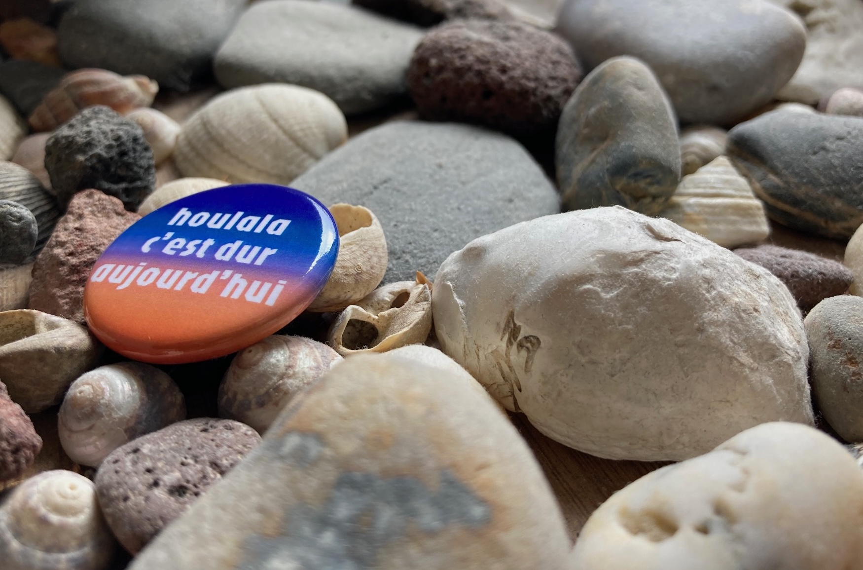 Depuis une bonne année j’ai du disposer environ 200 post-it dans l’espace public de mes trajets quotidiens avec la phrase « Houlala c’est dur aujourd’hui ». TINA me fait l’honneur d’en faire un badge, merci !!!!!!